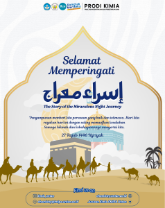 Hallo Mahasiswa Kimia👋🏻 Segenap Civitas Akademika Jurusan Kimia mengucapkan Selamat Memperingati Hari Isra’ Mi’raj 27 Rajab 1446 H✨ Peristiwa Isra’ Mi’raj menggambarkan Perjalanan agung dari