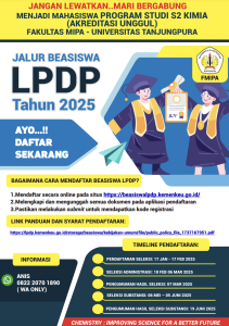 Beasiswa LPDP 2025 Untuk Program S2 Kimia FMIPA Universitas Tanjungpura Sudah Dibuka